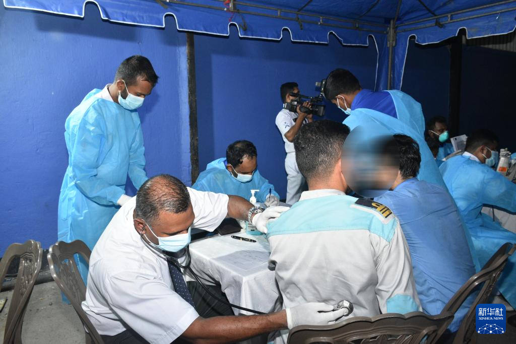 3月6日,在斯里兰卡科伦坡,“布什尔”号军舰船员接受体检。