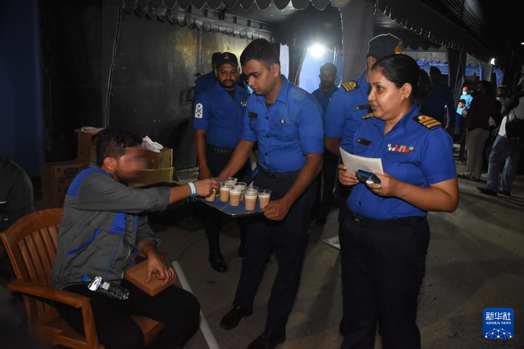 3月6日,在斯里兰卡科伦坡,斯方工作人员向伊朗“布什尔”号军舰船员提供饮品。