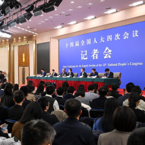 3月6日,十四届全国人大四次会议在北京梅地亚中心新闻发布厅举行记者会。国家发展和改革委员会主任郑栅洁、财政部部长蓝佛安、商务部部长王文涛、中国人民银行行长潘功胜、中国证券监督管理委员会主席吴清就发展改革、财政预算、商务、金融证券等相关问题回答中外记者提问。