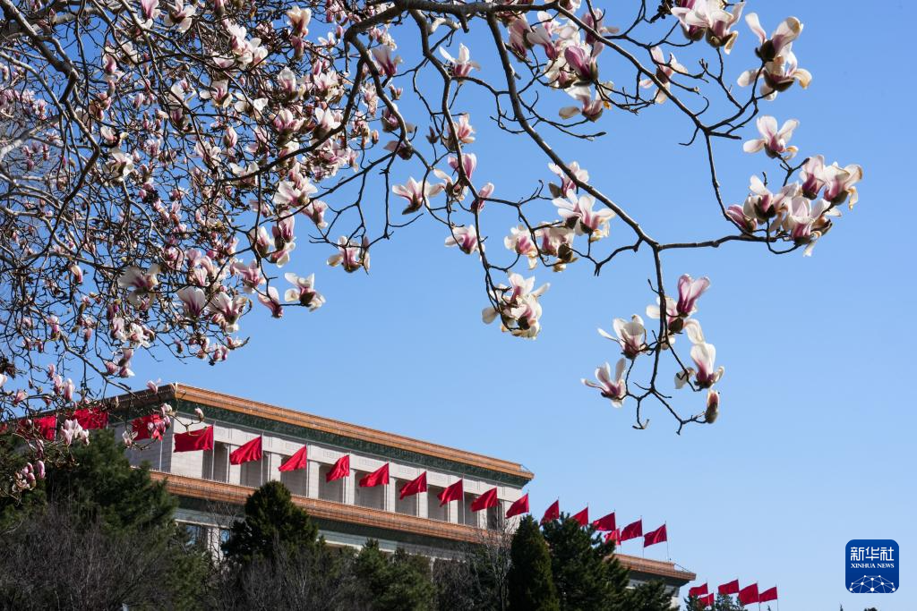 近日,随着气温回升,北京街头的玉兰花渐次开放。