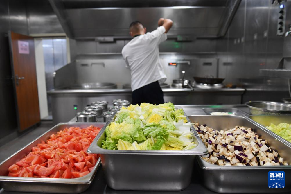 3月8日,海警三都舰执法员在烹饪晚餐。