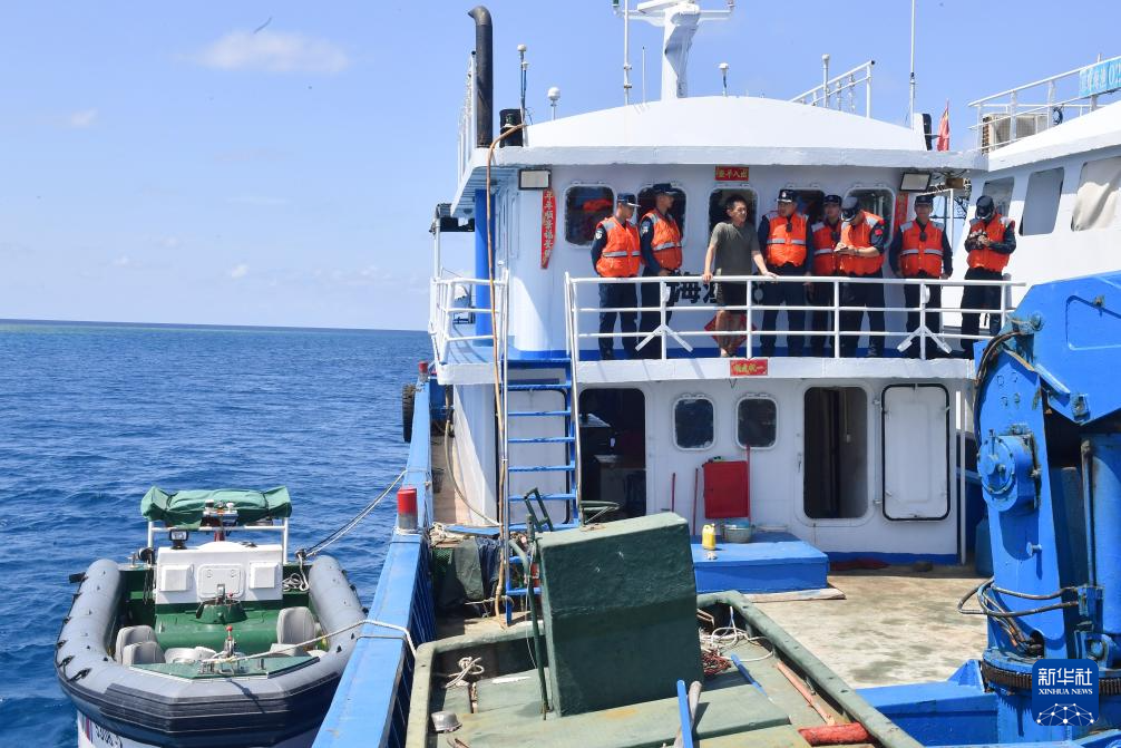 茫茫南海,壮阔浩渺,深蓝色的海水拍打着海警舰艇。连日来,海警三都舰编队在我国南海某海域执行巡航值守任务,维护祖国海洋权益。中国海警执法员开展常态巡逻执法、组织日常训练、管理服务过往船舶等工作。