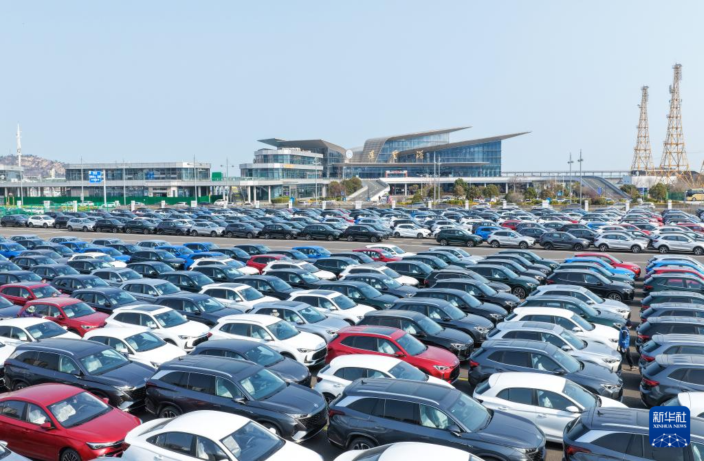 3月10日拍摄的江苏省连云港港出口汽车堆场(无人机照片)。
