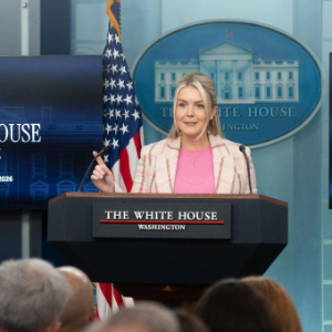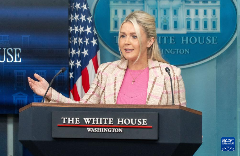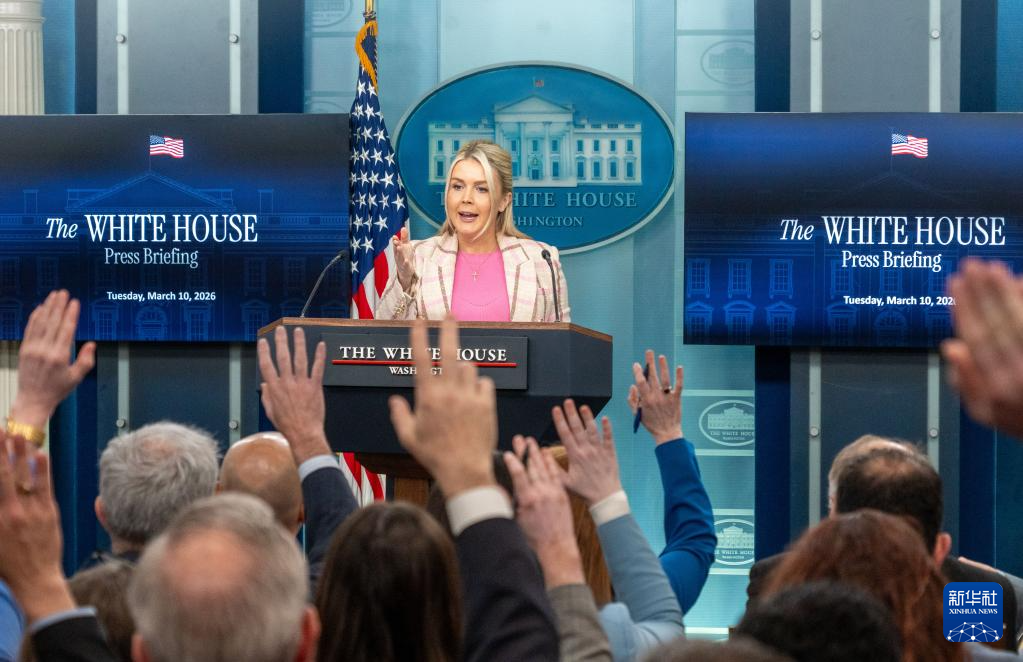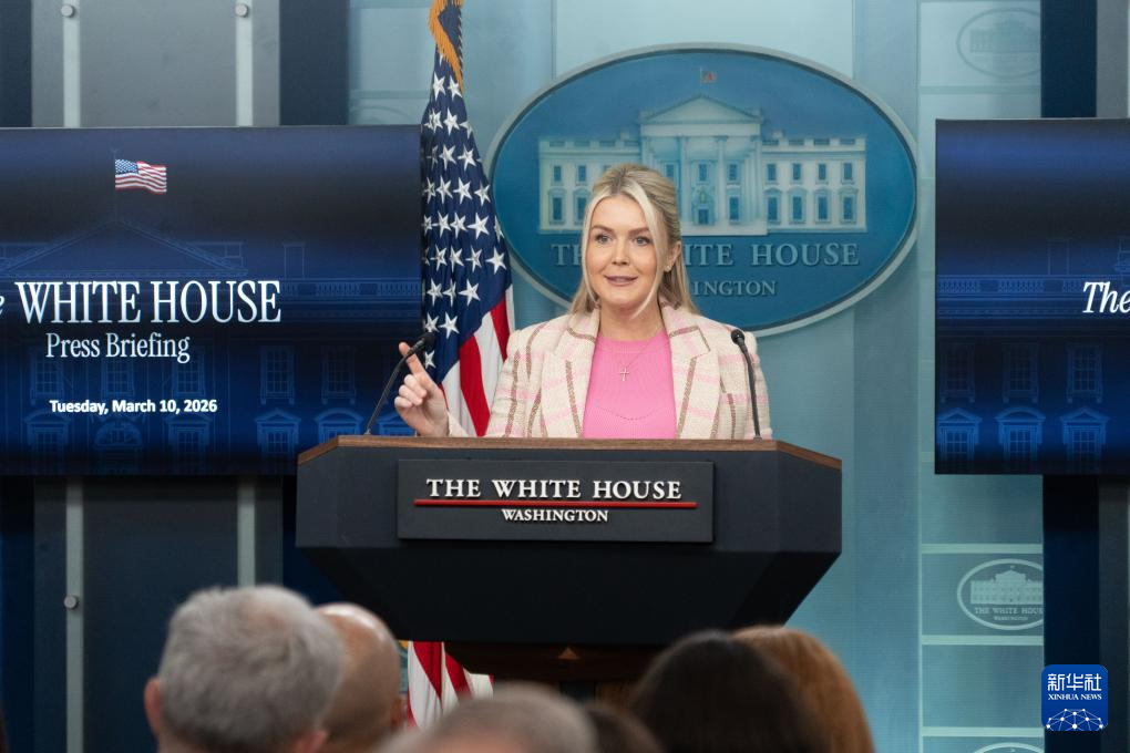 3月10日,在美国首都华盛顿,白宫新闻秘书莱维特出席记者会。
