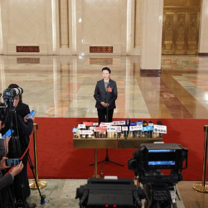 3月12日,第十四届全国人民代表大会第四次会议第三场“部长通道”集中采访活动在北京人民大会堂举行。这是记者在现场提问。