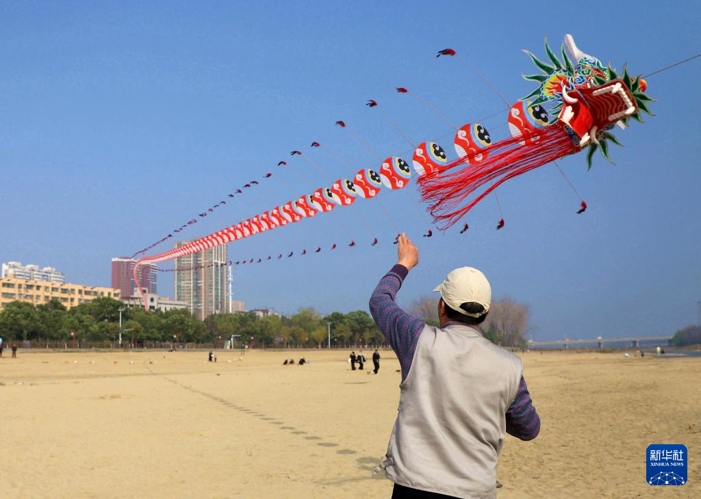 3月10日,在河南省南阳白河国家城市湿地公园,市民放风筝。
