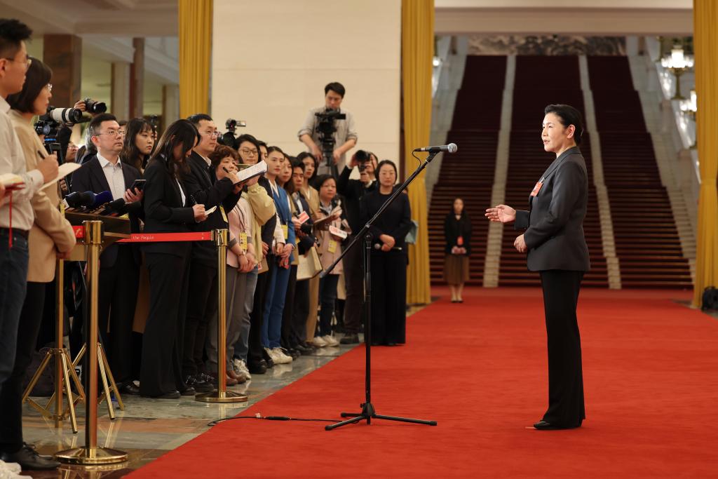 3月12日,第十四届全国人民代表大会第四次会议第三场“部长通道”集中采访活动在北京人民大会堂举行。这是司法部部长贺荣接受媒体采访。
