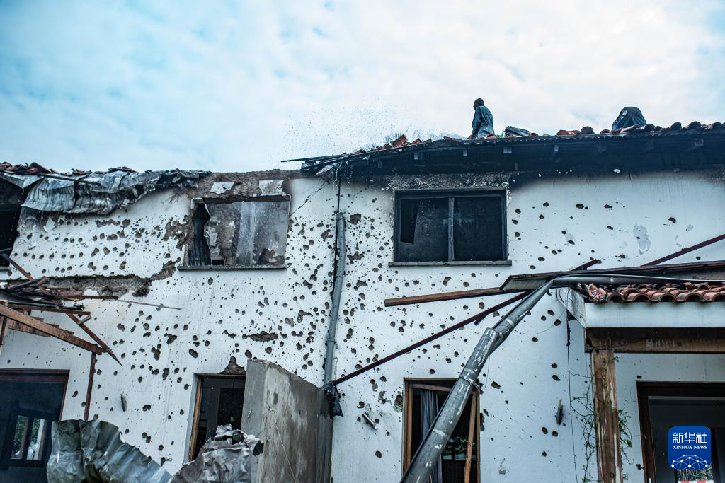 这是3月11日在刚果(金)戈马市拍摄的遭无人机袭击的建筑。