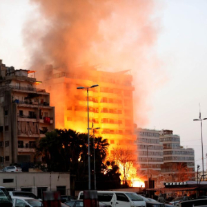 3月12日,黎巴嫩贝鲁特一处建筑在以色列空袭中被击中。