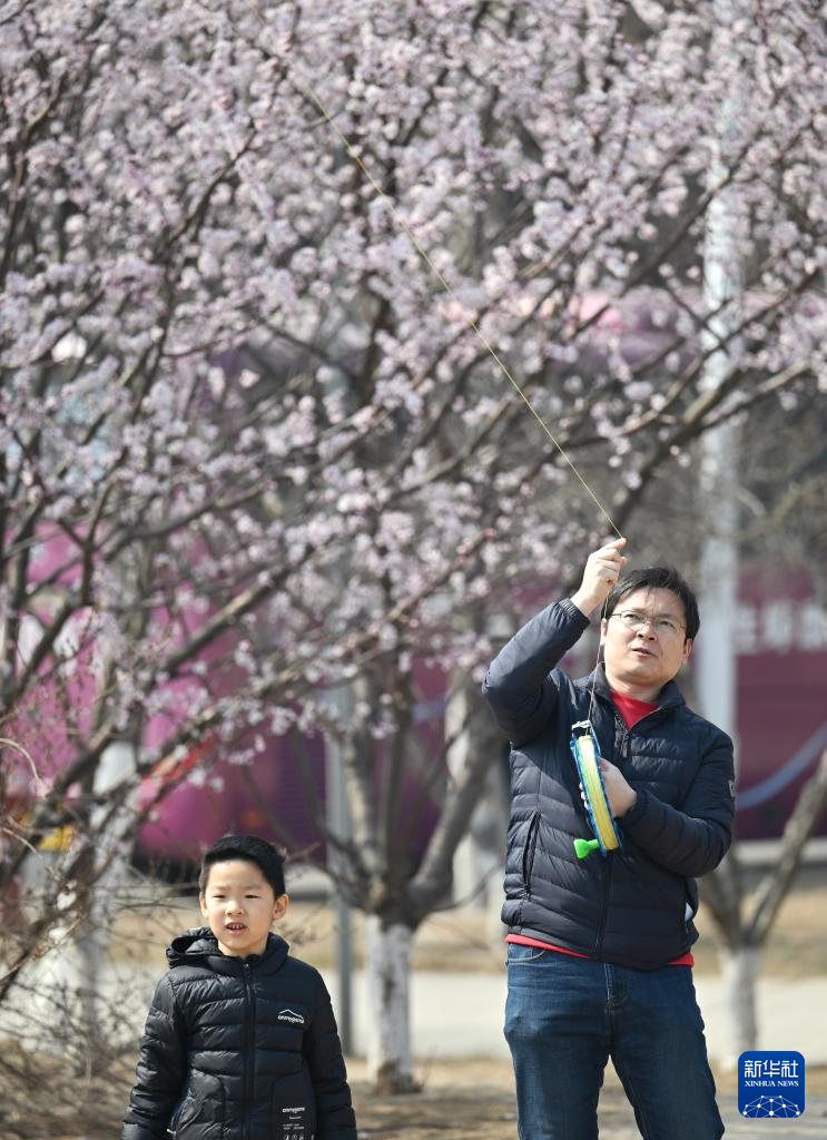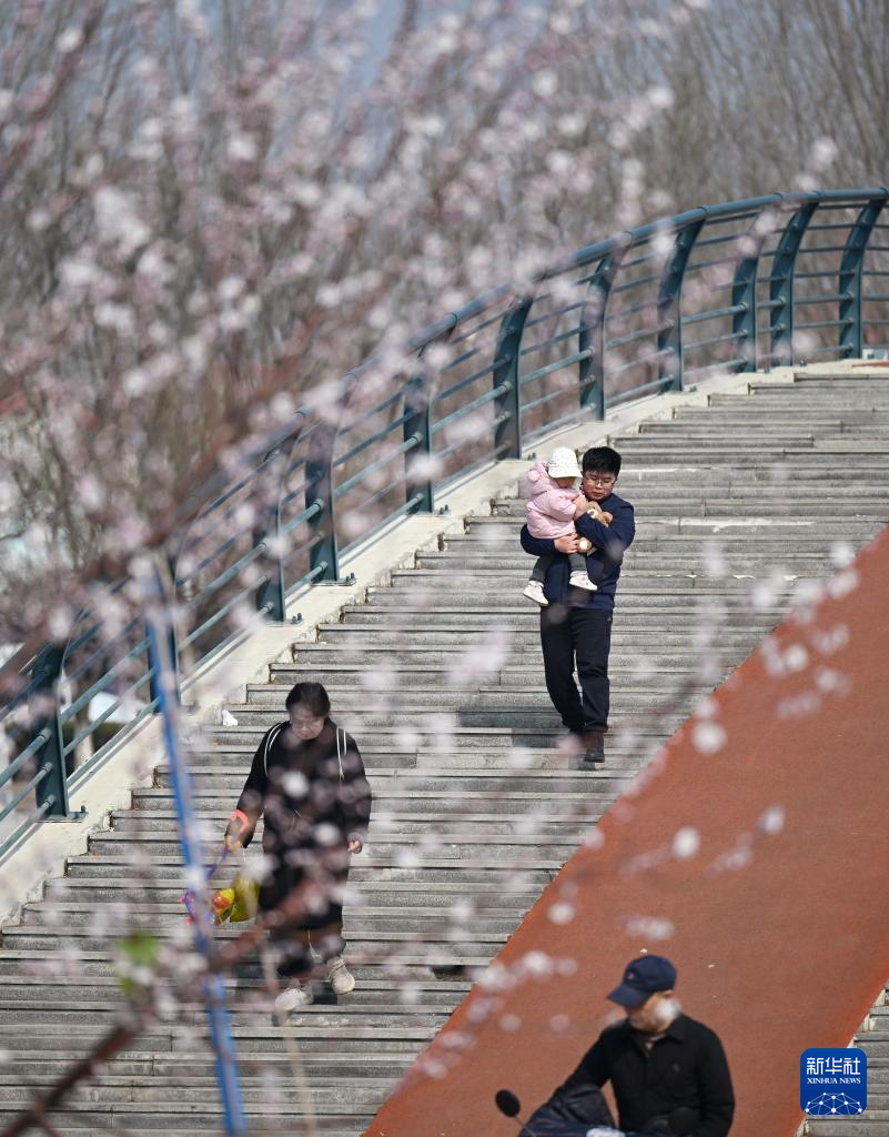 春日时节,人们在天津市西青区中北镇运河文化广场踏青赏花,乐享和煦春光。