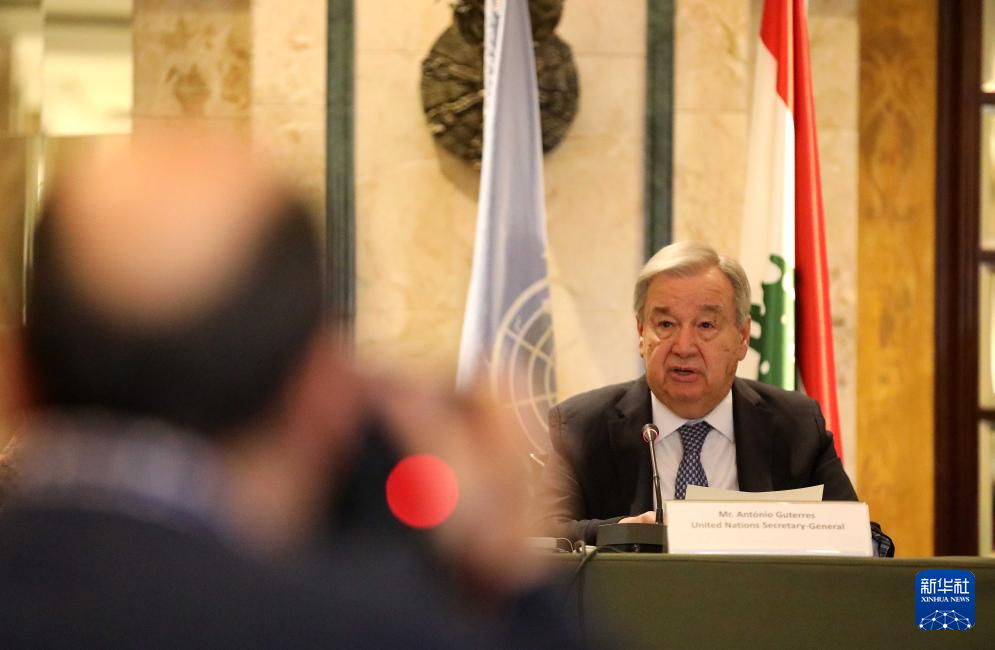 3月14日,联合国秘书长古特雷斯在黎巴嫩首都贝鲁特举行的新闻发布会上讲话。