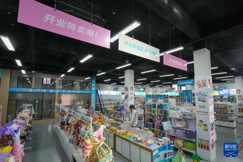 2月3日,工作人员在无锡市一处宠物店内整理各种宠物用品。