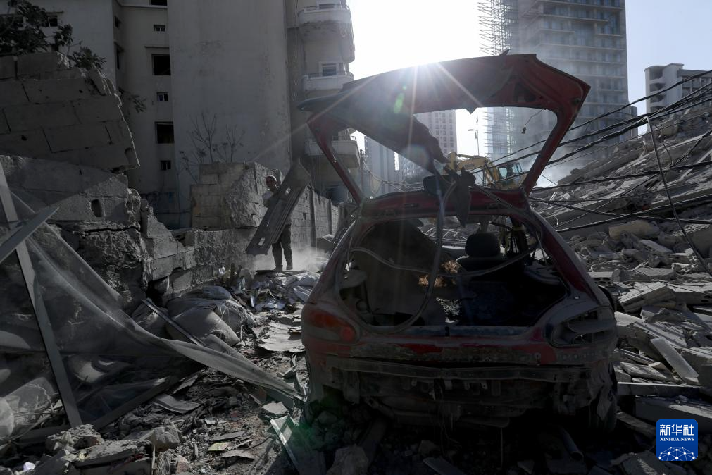 这是3月18日在黎巴嫩首都贝鲁特拍摄的在以色列空袭中损毁的建筑和车辆。