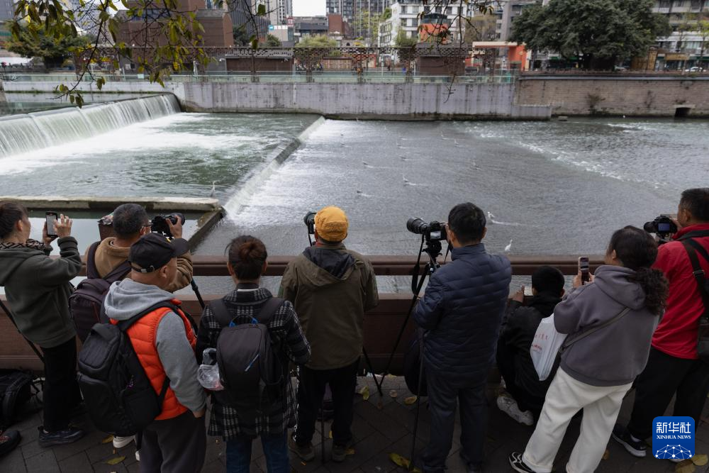 近日,在成都锦江河道九眼桥段,众多鹭鸟迎着逆流整齐、长时间地“站桩”觅食,被网友戏称为“洗脚”式捕鱼,吸引众多市民围观、拍照。据悉,这些鹭鸟长年栖息在锦江两岸,是锦江水生态质量持续提升的见证者。