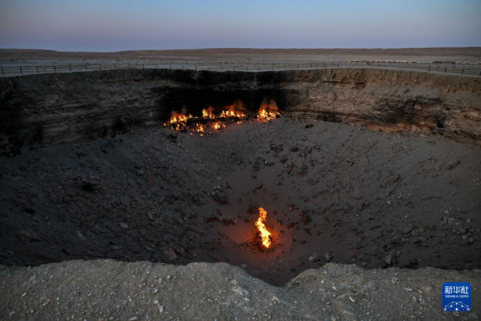 这是3月19日日落时分拍摄的土库曼斯坦达瓦扎天然气坑。