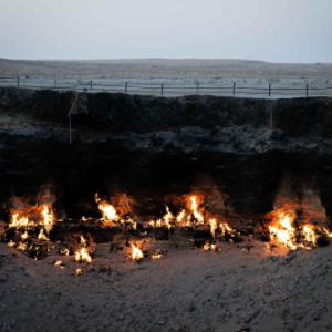土库曼斯坦天然气资源异常丰富,被誉为“蓝金之国”,该国境内地下天然气自主外泄、油气作业放喷等“漏气”现象屡见不鲜。地处卡拉库姆大沙漠中心地带的达瓦扎天然气坑,是该国“漏气”现象最为典型的地点之一。这一坑洞直径约70米、深约20米,沸腾的泥浆和明亮的橙色火焰从深渊中升起,好似恶魔随时会从中一跃而出,因此当地人为其取名为“地狱之门”。