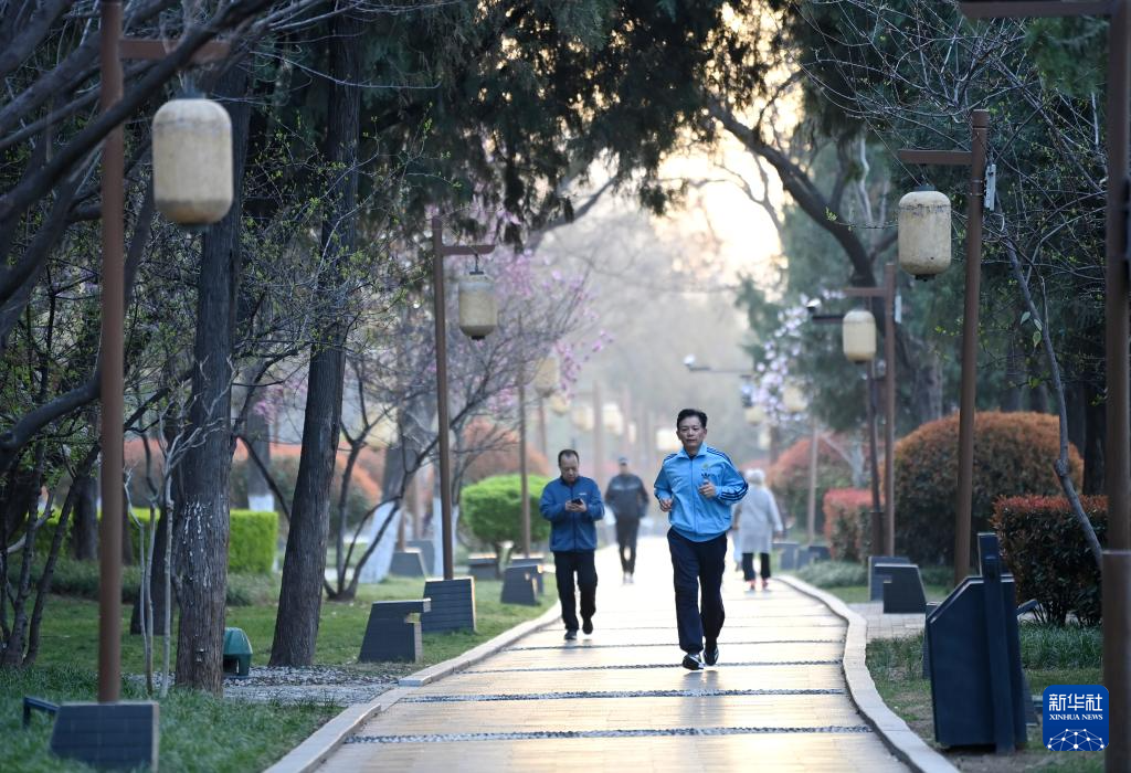 3月20日,市民在西安城墙环城公园文昌门至和平门段晨跑。