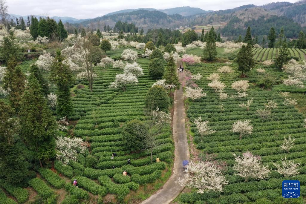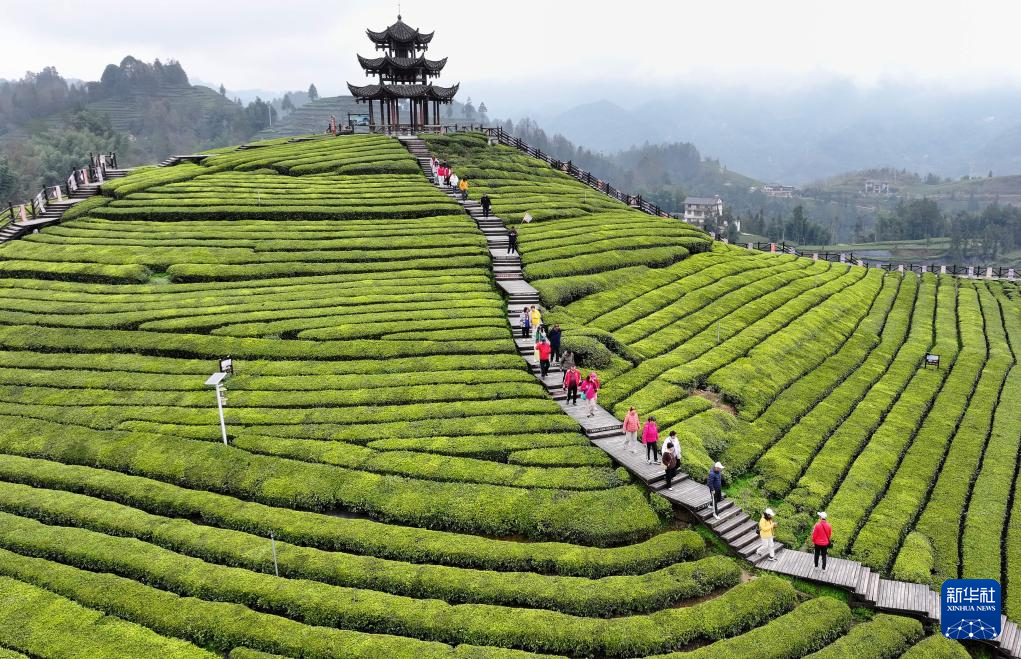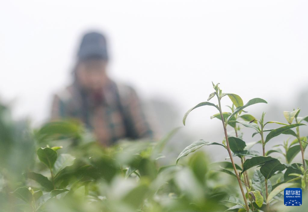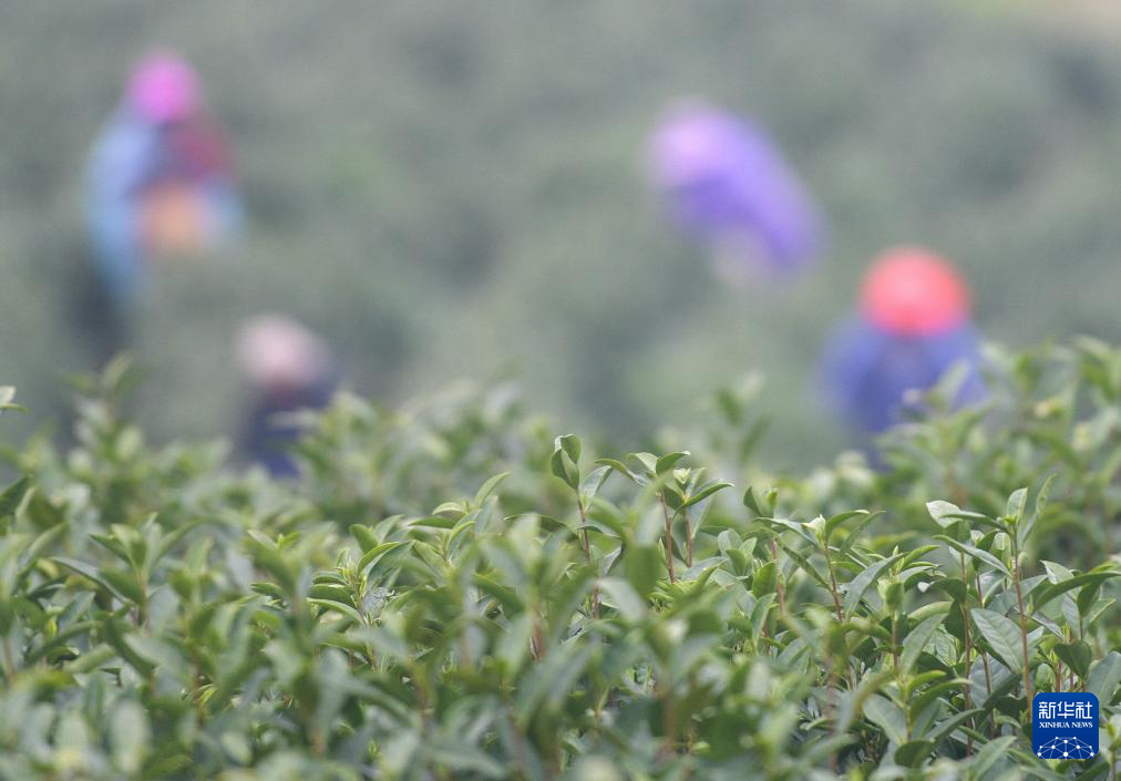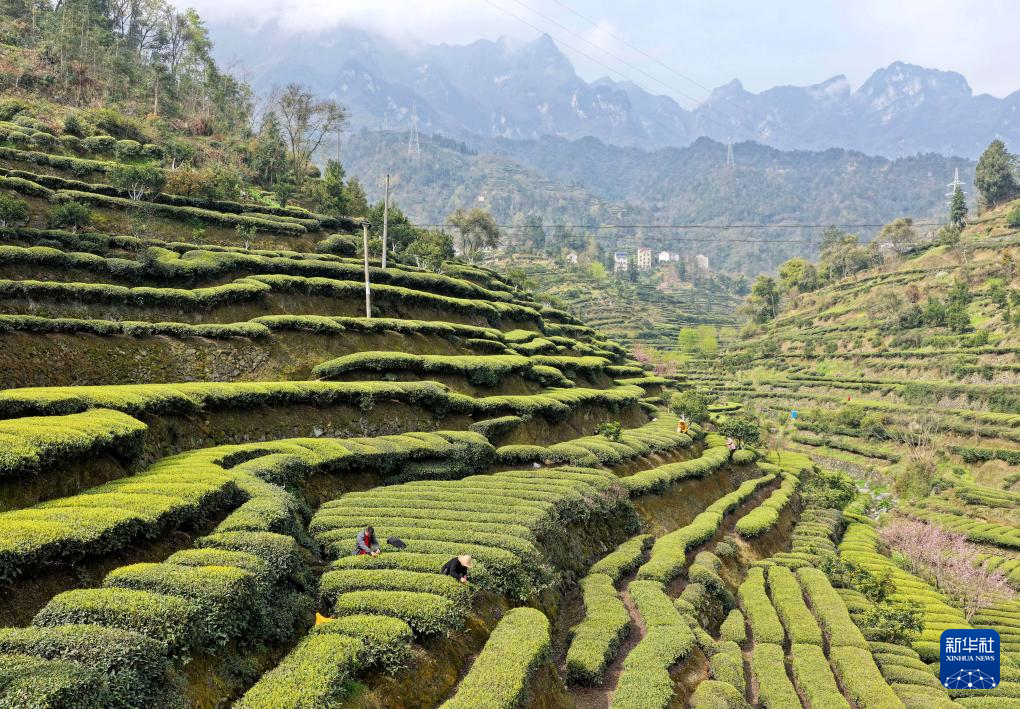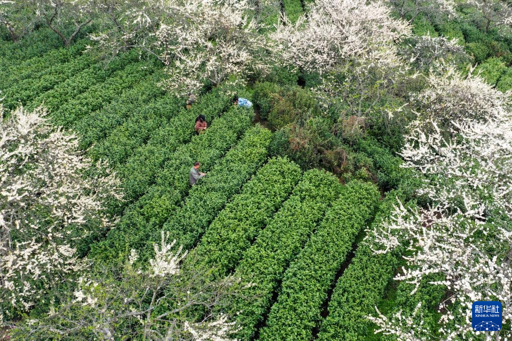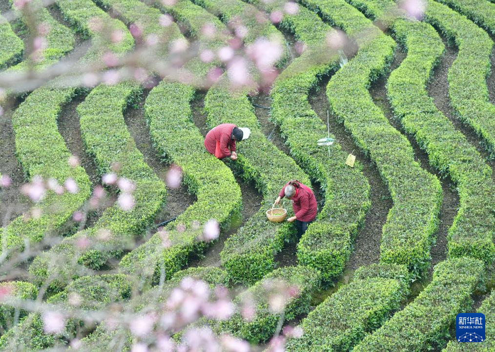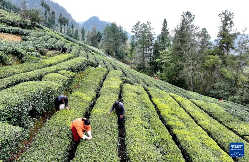 3月21日,村民在贵州省福泉市陆坪镇福兴村茶园采摘春茶。