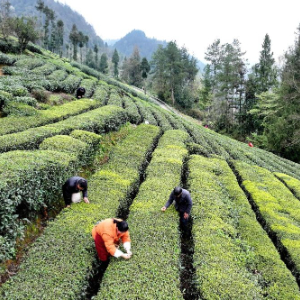 3月21日,茶农在三峡库区湖北省宜昌市秭归县茅坪镇一生态茶园采摘春茶。
