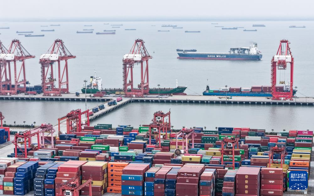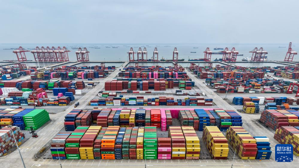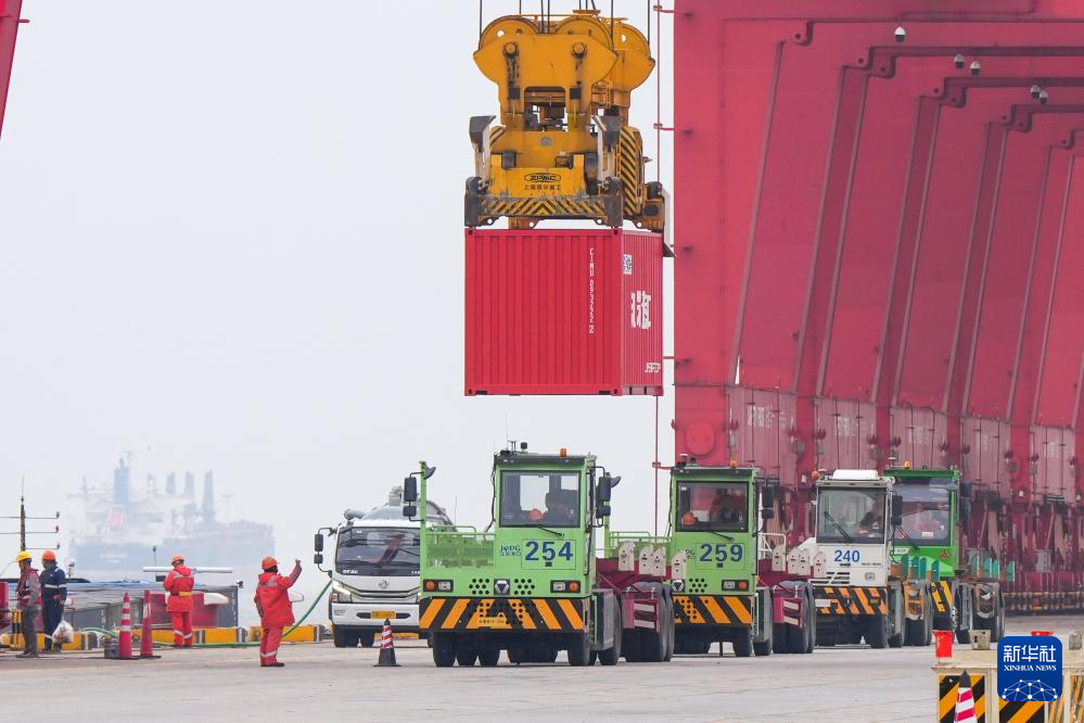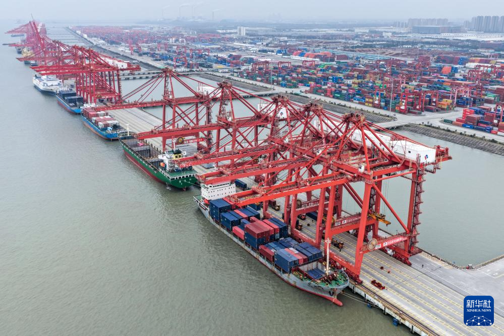 这是3月20日拍摄的繁忙的江苏太仓港集装箱码头。