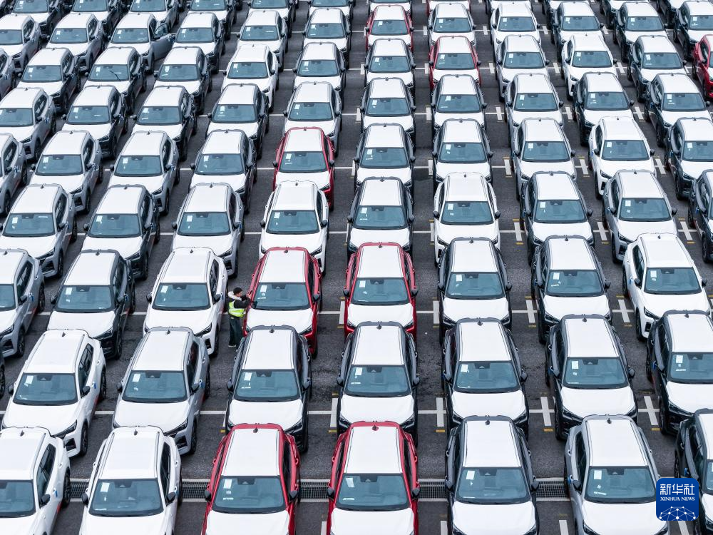 这是3月20日在江苏太仓港汽车码头堆场里拍摄的准备运输出海的商品车(无人机照片)。