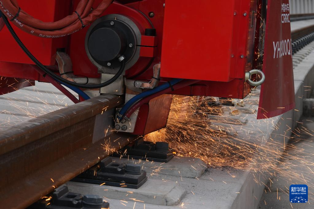 3月22日,新能源多场景闪光焊轨机在进行焊接作业。