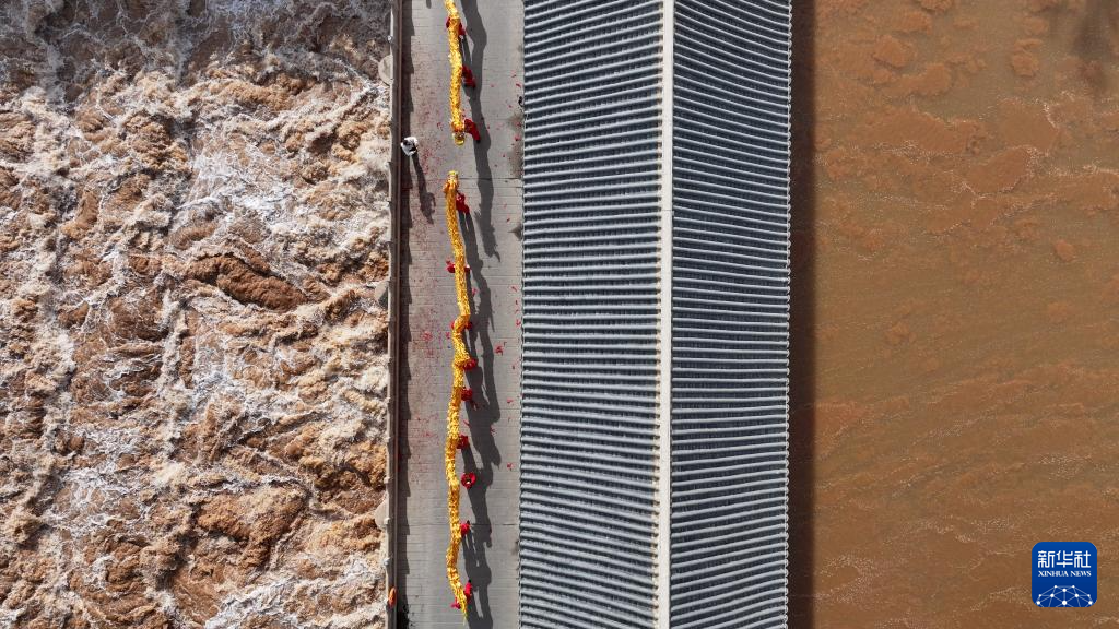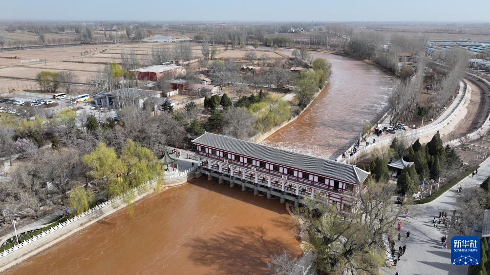 3月24日,位于青铜峡市的唐正闸开闸放水(无人机照片)。