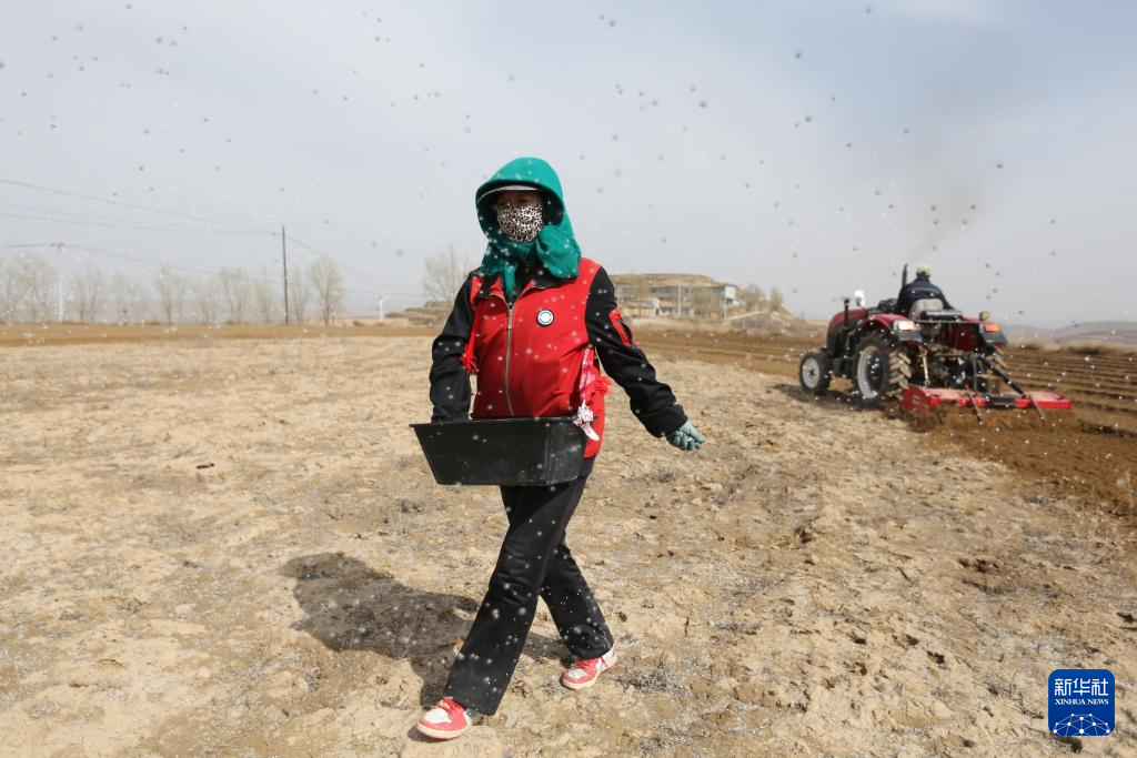 3月24日,甘肃省定西市安定区葛家岔镇南林村村民在田间施肥。