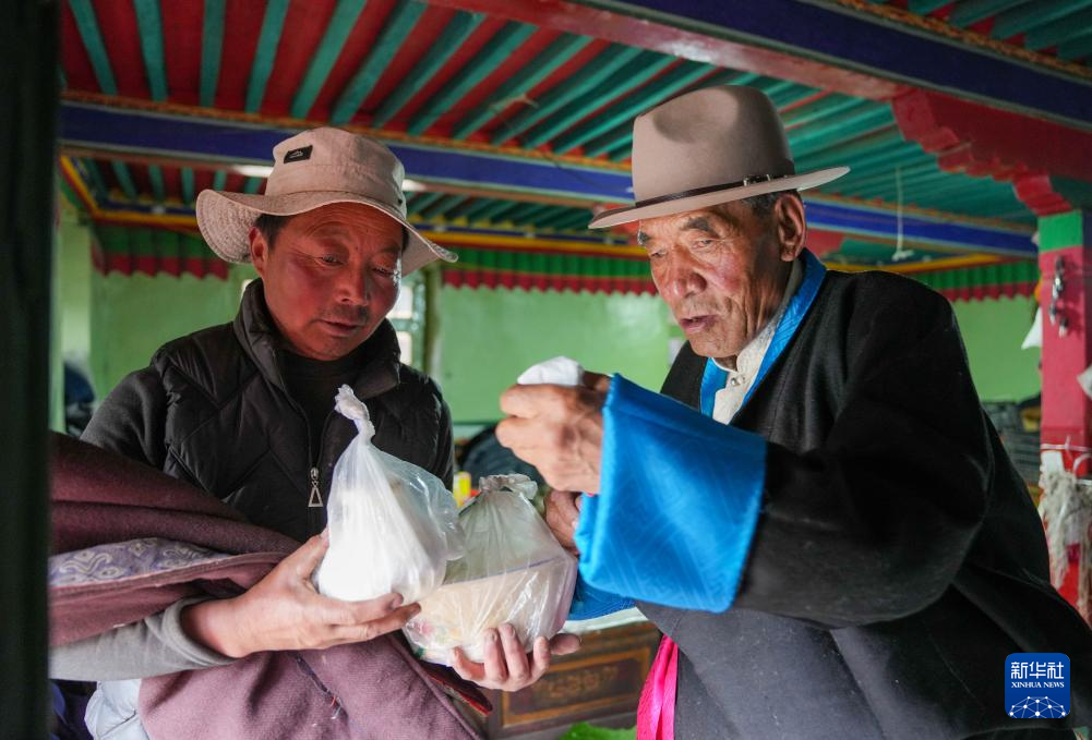 达瓦片多和女婿在整理酥油(3月12日摄)。