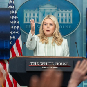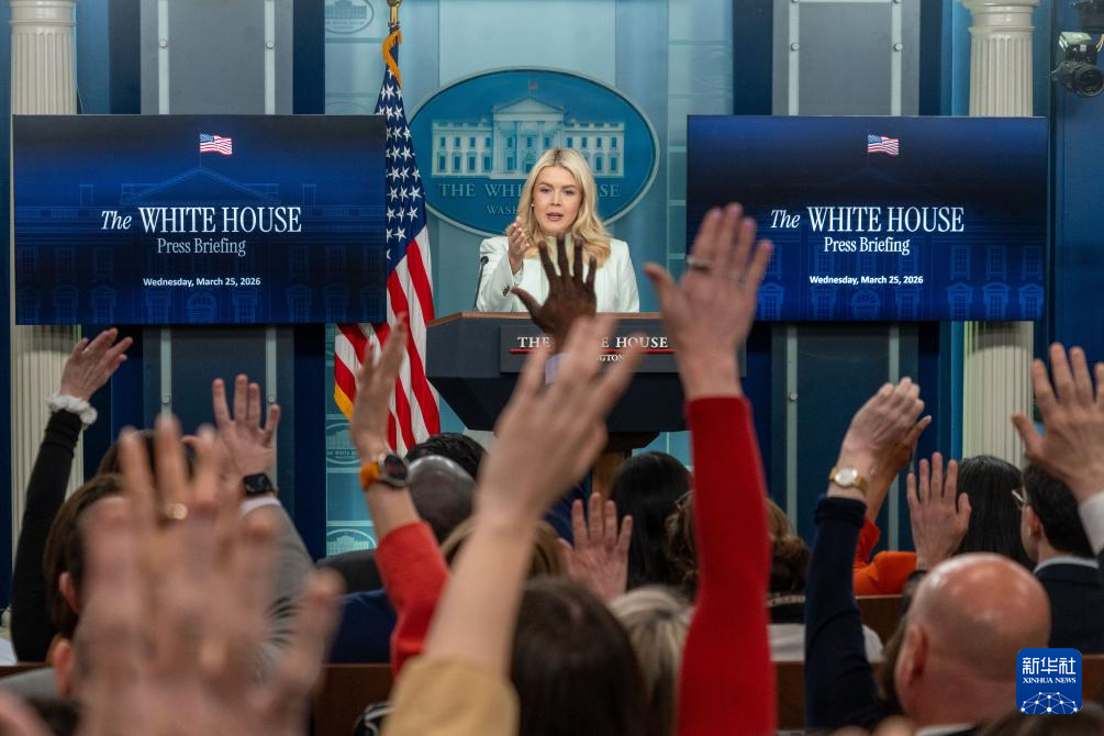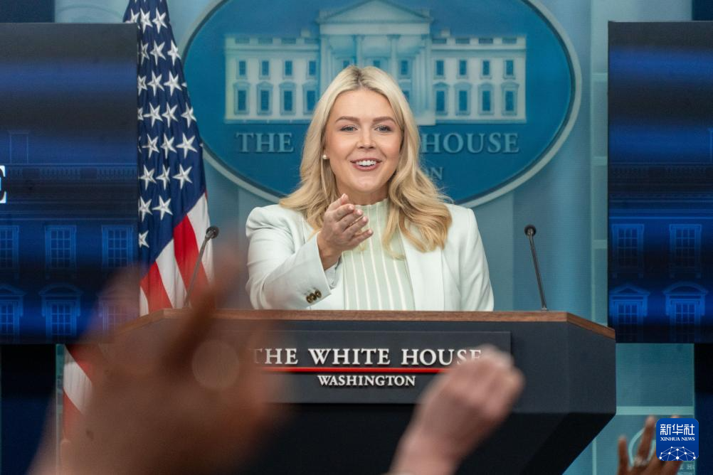 3月25日,在美国首都华盛顿白宫,白宫新闻秘书莱维特出席记者会。