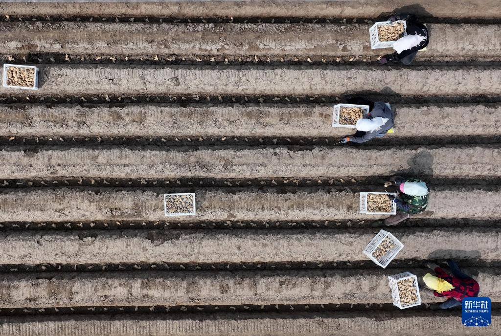3月26日,河北省唐山市丰南区大新庄镇的农民在田间播种生姜。