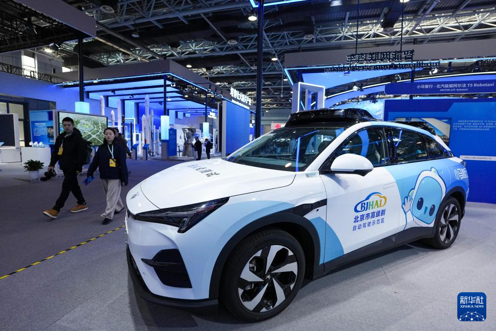 在中关村展示中心常设展上展出的自动驾驶车辆(3月24日摄)。