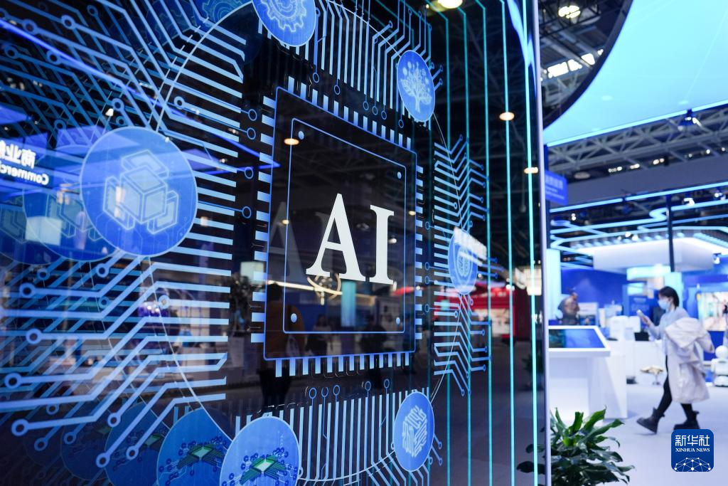 在中关村展示中心常设展上,参观者在“人工智能+”展区了解展出的AI芯片和服务器(3月25日摄)。