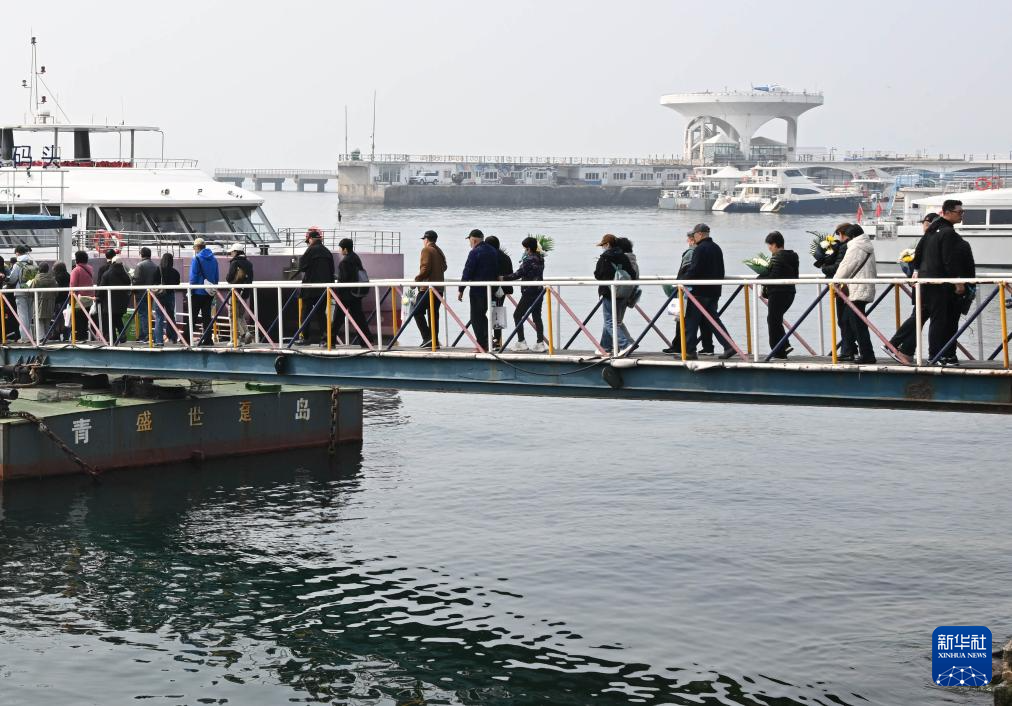3月27日,在青岛市殡仪馆海葬广场,海葬逝者家属参加追思活动启动仪式。