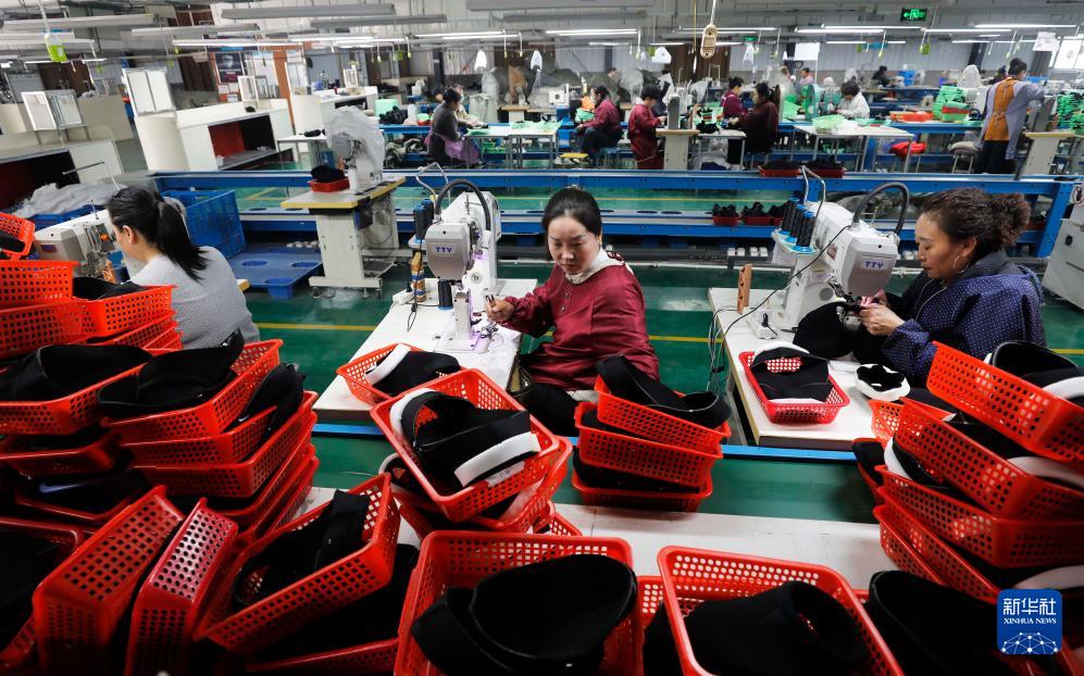 3月27日,工作人员在河南省武陟县隆和鞋业公司车间内加紧生产。
