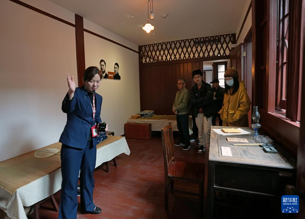 3月24日,位于上海市黄浦区太仓路127号的中国共产党第一次全国代表大会宿舍旧址(博文女校旧址)正式向公众开放。这是讲解员引导观众在宿舍旧址内参观。
