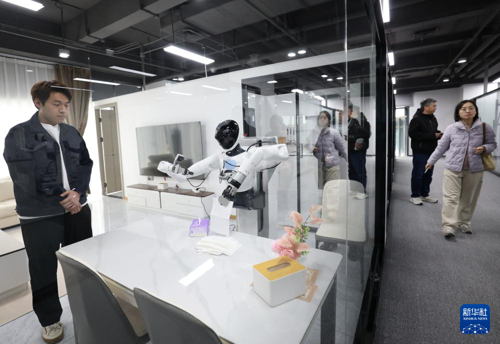 在人形机器人数据训练中心,机器人在工业智造、智慧家庭、商业服务等场景进行数据采集,为人形机器人相关研发提供数据支持。数据采集员在此操控机器人完成一系列特定任务,生成海量动作数据,让机器人“大脑”更智慧。未来,这些机器人将会进入工厂、商超、家庭等更多应用场景。