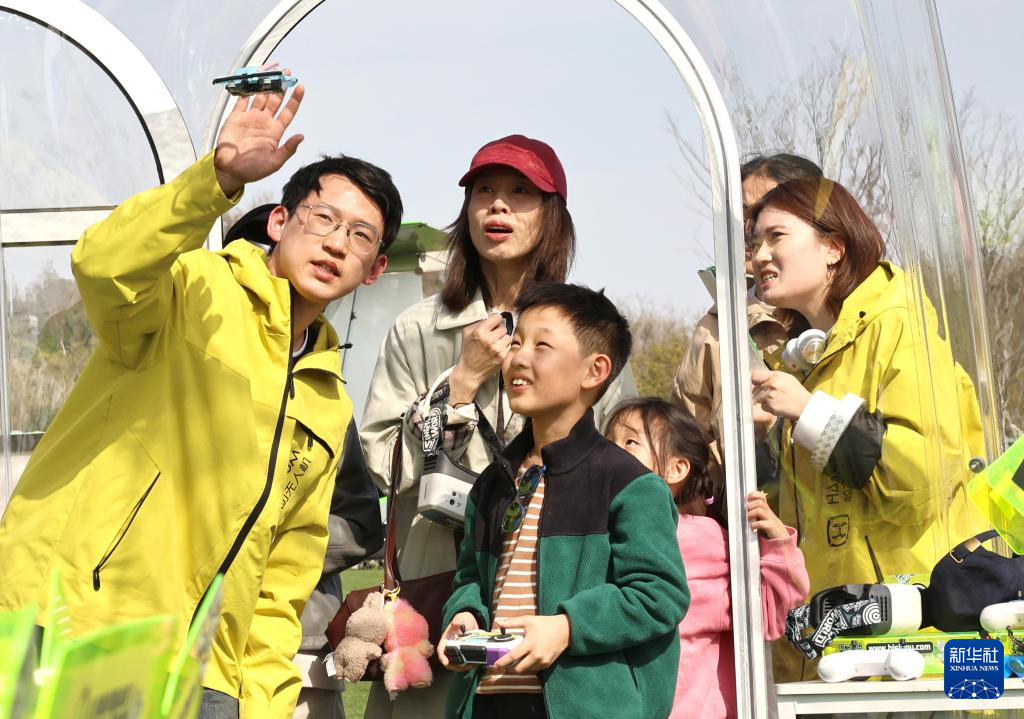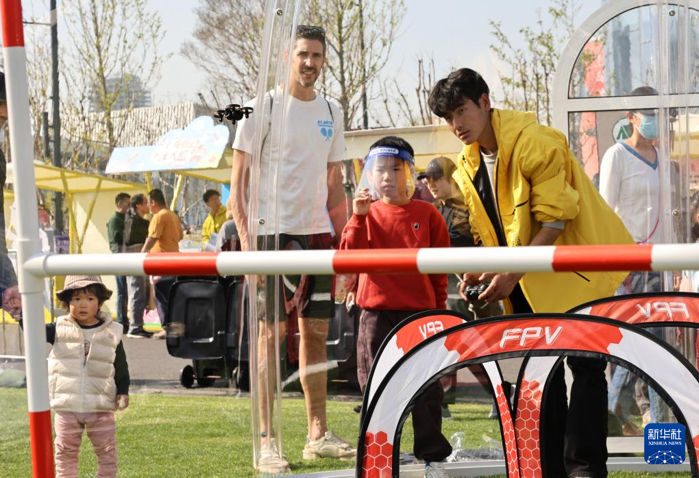 3月28日,在上海世博文化公园双子山脚下的星空草坪上,一场“双子山樱花季无人机嘉年华”活动吸引众多市民游客,现场体验观看穿越机障碍飞行、无人机飞行表演等活动,在明媚春光里感受无人机飞行乐趣。