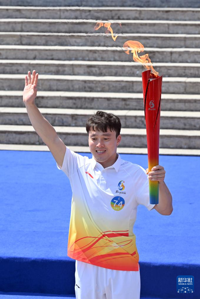 3月30日,最后一棒火炬手齐广璞手持火炬抵达收火仪式现场。