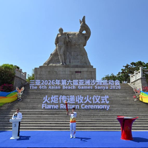 3月30日,第六届亚洲沙滩运动会火炬传递活动在海南三亚举行。
