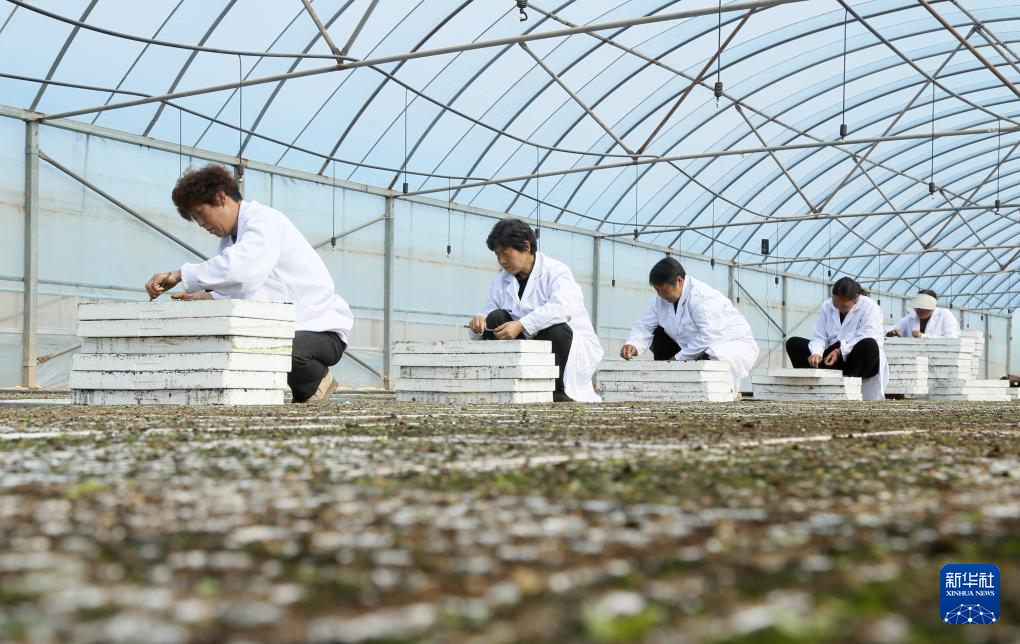 3月31日,农民在河南省洛阳市汝阳县刘店镇沙坪村育苗大棚育苗。