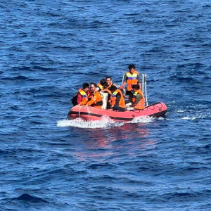 3月31日,在印度尼西亚北苏拉威西省附近海域,救援人员转移获救船员。