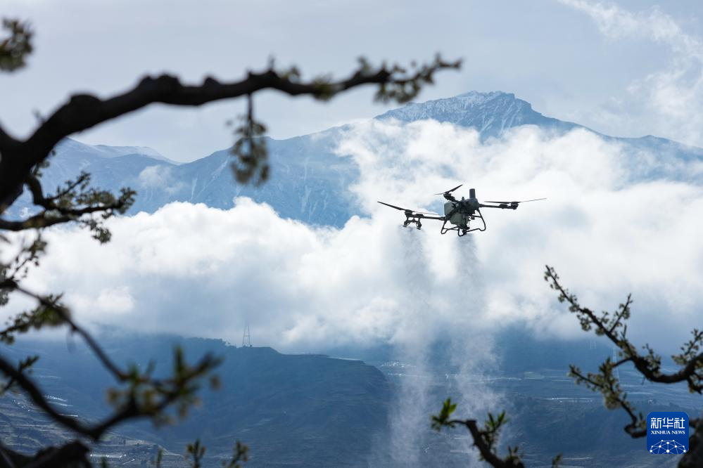 3月31日,在四川茂县“茂县李”标准化种植基地,无人机进行植保工作。