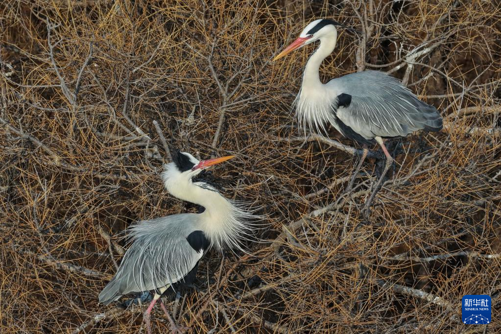 这是4月1日在黑龙江省同江市拍摄的苍鹭群(无人机照片)。