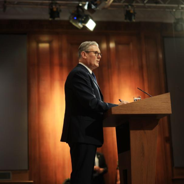4月1日,英国首相斯塔默参加在伦敦举行的新闻发布会。