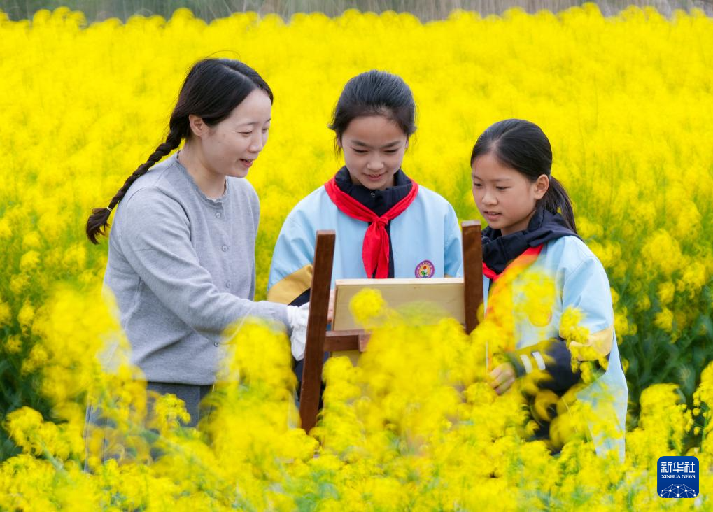 4月1日,江苏省泰州市姜堰区溱潼中心小学的学生在美术老师的指导下进行绘画写生。