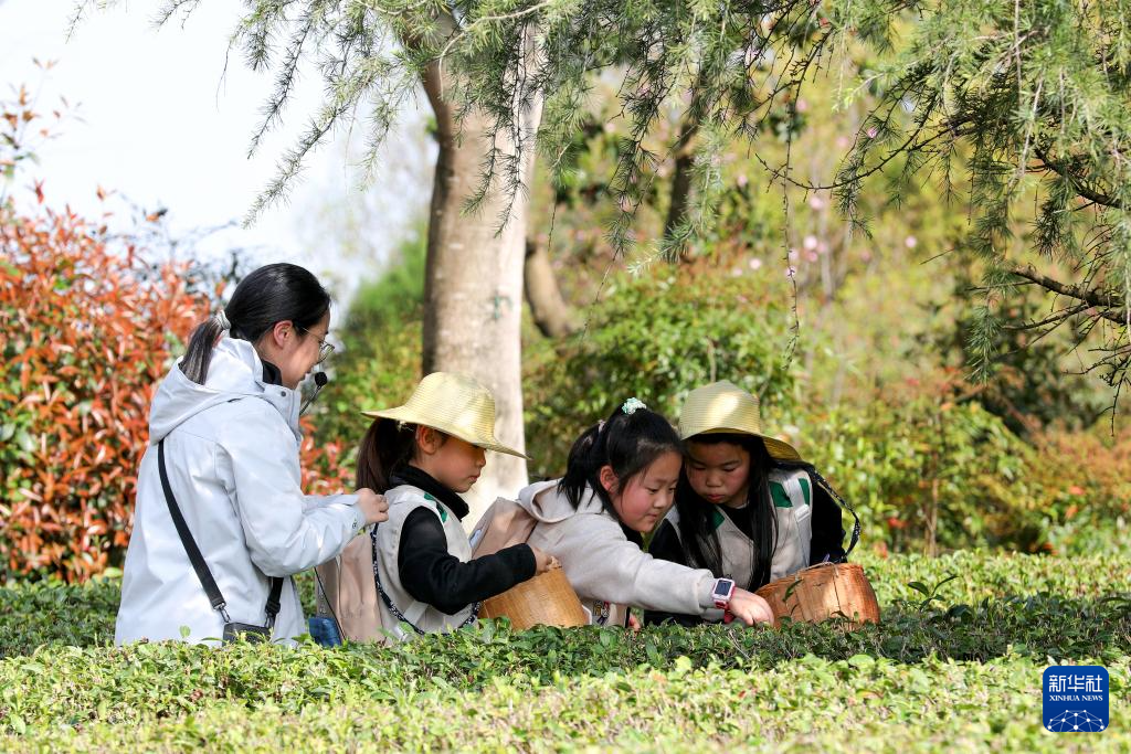 4月1日,学生们利用春假来到安徽省黄山市徽州区谢裕大茶博园体验采摘春茶。