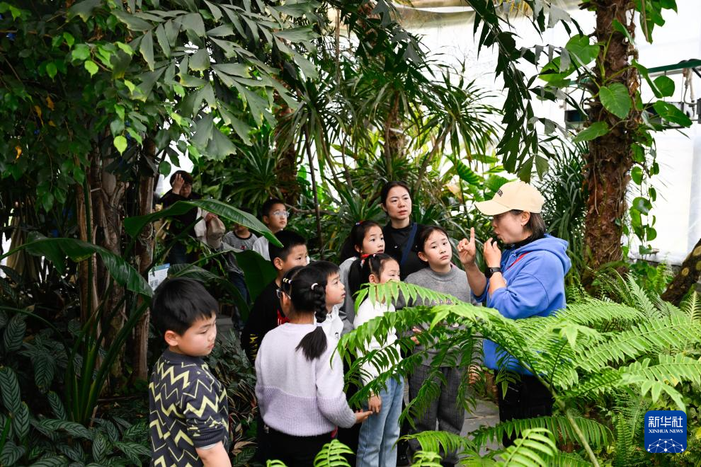4月1日,在位于江苏省句容市的江苏农博园,工作人员给小朋友讲解植物知识。
