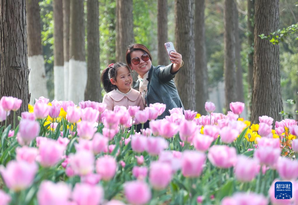 4月1日,在安徽巢湖经济开发区半汤郁金香高地,小朋友参加春假写生活动。