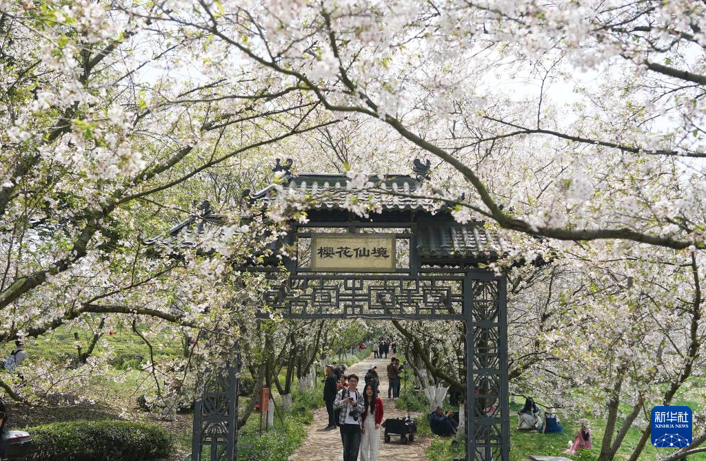 近日,江西省南昌县凤凰沟景区樱花进入盛花期。景区2000余亩樱花谷内,早樱、晚樱、迎春樱等20余个品种樱花次第绽放,春风拂面,花海连片,吸引不少游客前来赏花踏青。